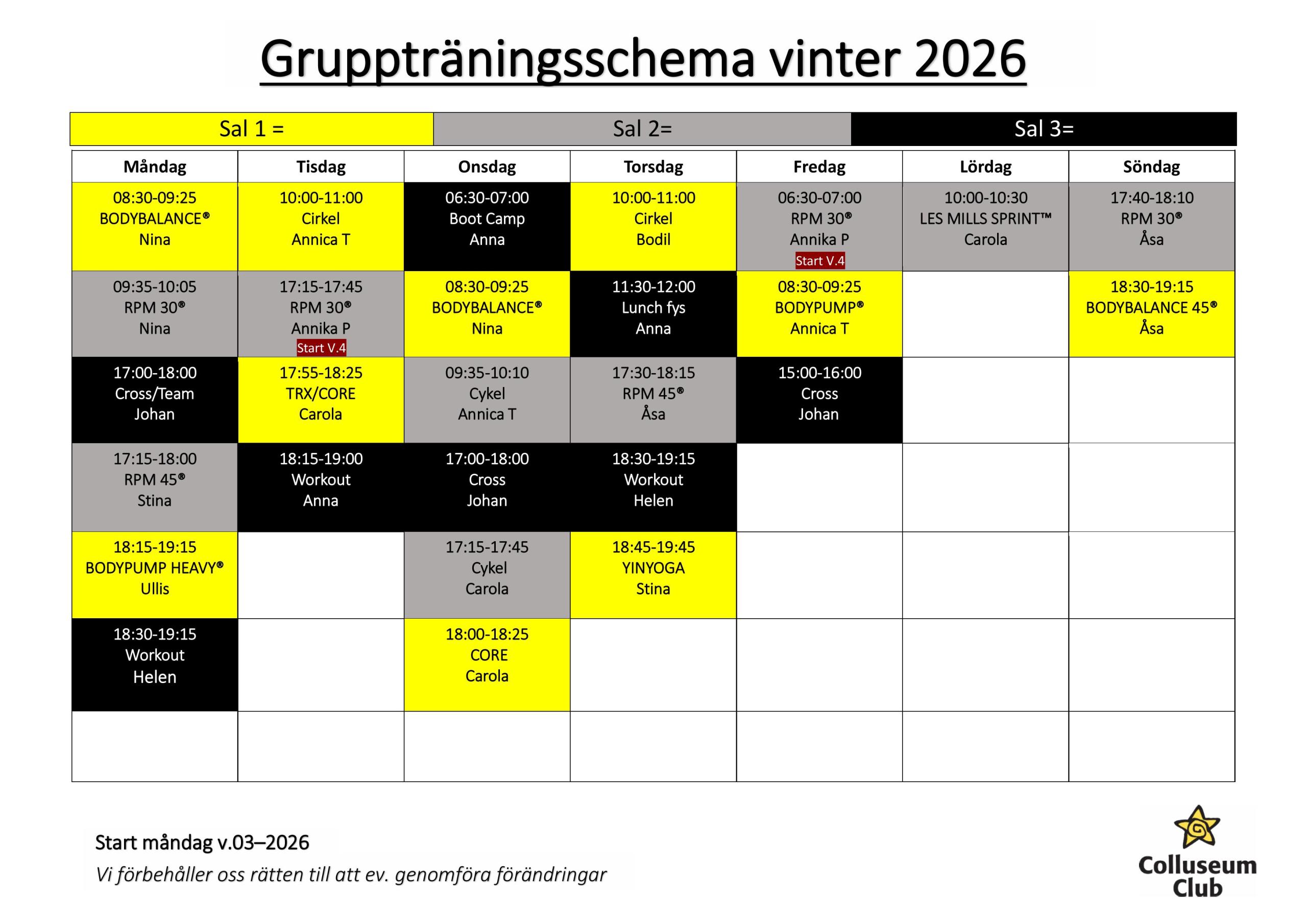 I vårt gruppträningsschema har vi en mycket varierad träning där det finns pass som passar alla. Vare sig du är nybörjare eller tränat innan kan du delta i passen i vårt gruppträningsschema.